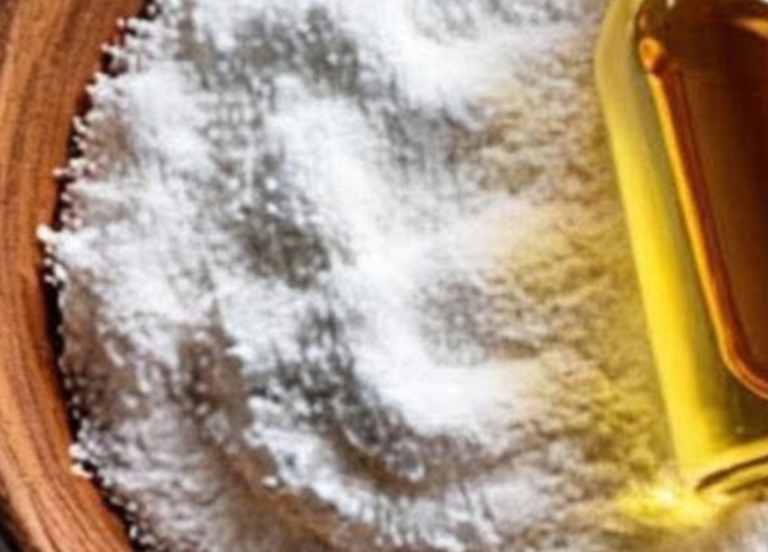 - Mélanger huile de ricin et bicarbonate de soude dans un petit bol pour former une pâte épaisse.