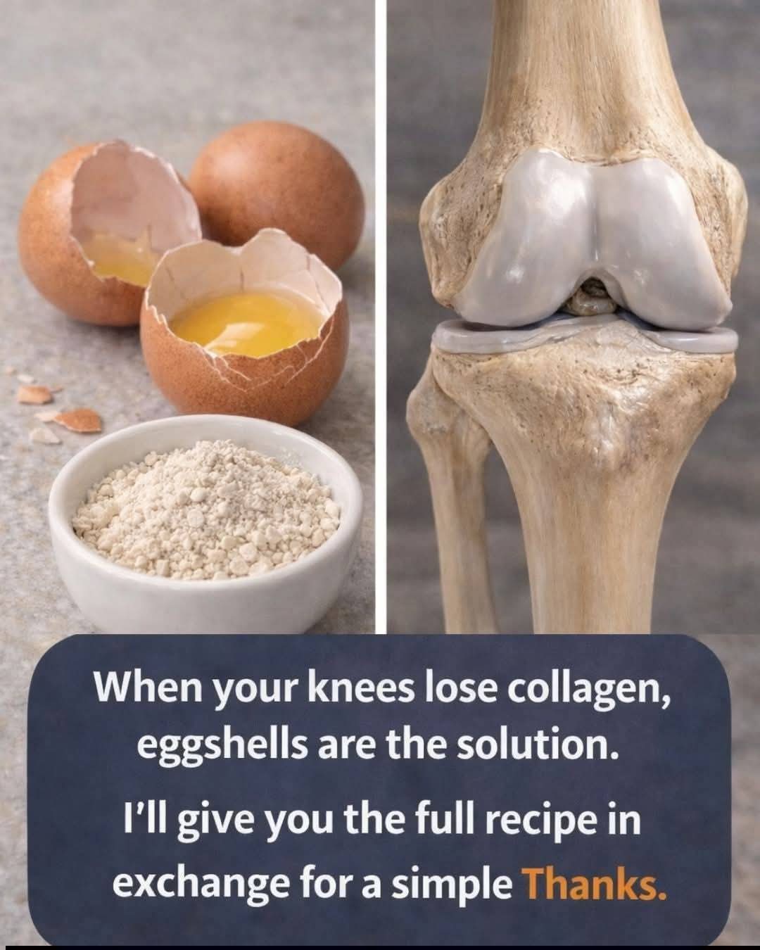 Why Joint Comfort Matters as We AgeJoints, especially the knees, work hard every single day. They absorb impact, support movement, and help us stay active. Over time, the natural cushioning in joints can change, leading to occasional stiffness or reduced flexibility. This is a normal part of life for many adults, particularly those who stay on their feet a lot or enjoy sports. Research suggests that certain nutrients play a role in maintaining the building blocks of connective tissue, including collagen and other compounds that help joints feel smoother.But here’s the good news: small, consistent choices in your kitchen may offer gentle support. One often-overlooked option comes from something most of us throw away—eggshells. The thin membrane inside the shell contains proteins and natural compounds that studies have explored for their role in everyday joint comfort.What Makes Eggshell Membrane Special?Eggshell membrane is the delicate layer between the hard outer shell and the egg white. It is naturally rich in type I, V, and X collagen, along with glycosaminoglycans such as chondroitin sulfate, dermatan sulfate, and hyaluronic acid. These are the same types of substances found in healthy joint tissue.But that’s not all. The membrane also includes small amounts of glucosamine and other proteins. Multiple clinical studies have looked at natural eggshell membrane (often called NEM in research) and noted improvements in reported comfort levels and daily function when taken consistently. For example, participants in several trials experienced noticeable differences in how their knees felt during normal activities after several weeks.This is why many people are curious about using clean, properly prepared eggshells as part of a thoughtful approach to nutrition.The Science Behind Eggshell Membrane and Joints (In Simple Terms)Several randomized, double-blind, placebo-controlled studies have examined eggshell membrane supplementation. In one well-known trial, a daily amount around 500 mg showed positive changes in stiffness and overall comfort scores within 10 days, with benefits continuing over 60 days. Other research found similar patterns in early-stage knee discomfort, with participants reporting better mobility and daily ease.Researchers believe the combination of collagen types and natural glycosaminoglycans may help support the body’s own processes for maintaining cartilage and reducing everyday inflammation markers. One meta-analysis of multiple studies confirmed consistent trends toward improved comfort and function.Importantly, these studies reported no serious side effects, and the material was generally well tolerated. This makes eggshell membrane an interesting option for those exploring natural dietary additions.How to Prepare Eggshell Powder Safely at HomeMaking your own eggshell powder is straightforward and costs almost nothing. The key is proper cleaning and drying to ensure safety. Here is a simple, step-by-step guide you can follow today:Collect clean eggshells from about 10–12 eggs (organic or pasture-raised are popular choices).Rinse them thoroughly under running water to remove any remaining egg residue.Boil the shells in water for 10–15 minutes to help eliminate any bacteria.Drain and spread them on a baking sheet.Bake at a low temperature (around 200–225°F or 93–107°C) for 20–30 minutes until completely dry and brittle.Let them cool, then grind into a fine powder using a clean coffee grinder or high-speed blender.Store the powder in an airtight jar in a cool, dry place.Many people add a small daily amount (such as ¼ to ½ teaspoon) to smoothies, yogurt, or oatmeal. Always start small and listen to your body.Separating the Membrane for Extra BenefitsSome enthusiasts prefer to focus on the thin membrane itself, which is particularly rich in collagen and hyaluronic acid. After boiling and drying the shells:Gently peel away the inner membrane before grinding the hard shell.Dry the membranes separately on a tray.Crush or blend them into a finer form.This membrane powder can be used in the same way as the full-shell version. The process takes a little more patience but gives you two useful products from one ingredient.Here are two quick comparison lists to help you decide:Basic Eggshell Powder Benefits (General Use)Provides natural calcium for everyday bone supportEasy to make in large batchesVersatile for adding to recipesBudget-friendly kitchen stapleEggshell Membrane Focus (Targeted Approach)Higher concentration of collagen types and glycosaminoglycansMay offer more direct support for connective tissue comfortSlightly more time-consuming to separatePopular among those exploring joint-specific nutritionDaily Habits That Work Alongside Eggshell IdeasNutrition is only one piece of the puzzle. Pairing simple dietary choices with movement can make a real difference in how joints feel over time.Stay active with low-impact activities like walking, swimming, or gentle yoga.Maintain a balanced diet rich in colorful vegetables, healthy fats, and quality protein.Stay hydrated—water helps keep joint fluid moving smoothly.Consider gentle stretching routines in the morning and evening.Get enough rest so your body can recover and repair.Many people find that combining these habits with thoughtful additions like prepared eggshell powder creates a sustainable routine they actually enjoy.Practical Recipe: Simple Eggshell Morning BoostHere is one easy way to include your homemade powder:Ingredients (for one serving):1 cup of your favorite smoothie base (almond milk, yogurt, or water)¼ teaspoon finely ground eggshell powder (start small)Handful of berries1 bananaOptional: a scoop of plain protein powder or a teaspoon of nut butterBlend everything until smooth. The powder has almost no taste when finely ground, so it mixes in easily. Use this as a daily breakfast addition or post-walk snack.More Ways to Use Eggshell Powder CreativelySprinkle a tiny pinch into scrambled 