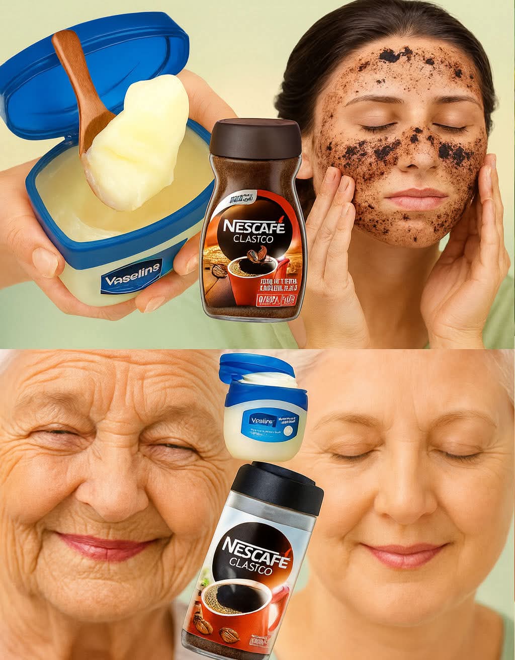 - Après avoir nettoyé le visage, mélangez du café + de la vaseline dans votre paume