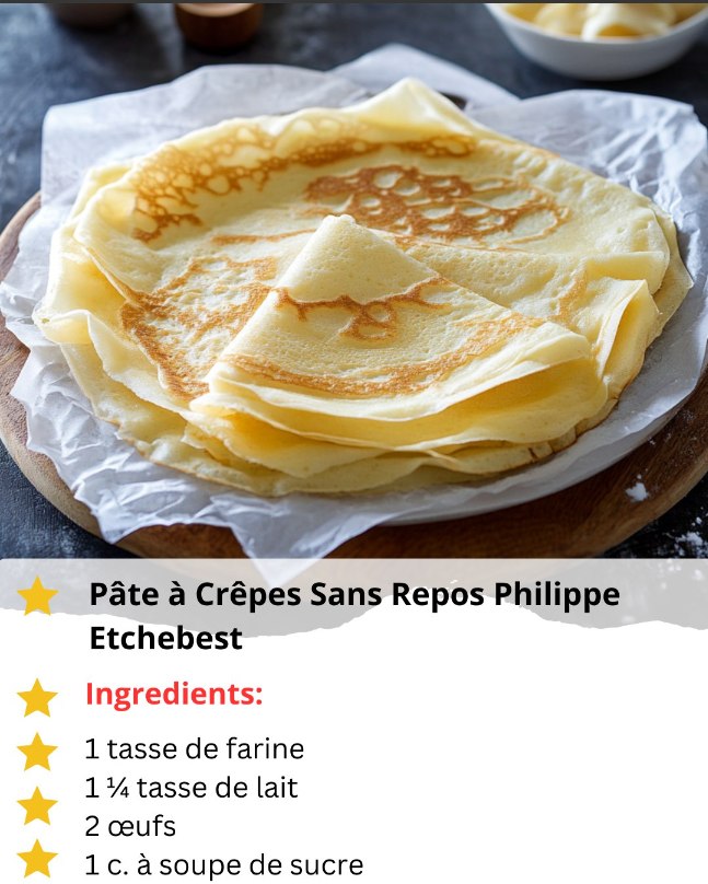 Pâte à Crêpes Sans Repos Philippe Etchebest** Des crêpes, que voulez-vous faire? Ze zijn veelzijdig, smakelijk et kunnen zowel zoet als hartig zijn. Mais qu’est-ce que j’ai encore à dire et à ce moment-là, je te dis que tu es rouillé? Pas de problème ! Le chef Philippe Etchebest a reçu une réception pour une **pâte à crêpes sans repos** (pannenkoekbeslag zonder rusttijd), alors je snel kunt genieten van heerlijke crêpes zonder long teten moeten wachten. Ce réception est parfaite pour un snel ontbijt, un brunch gezellige de soi-même, une traite de dernière minute. ### Ingrédients : – 250 g de fleurs – 3 œufs – 500 ml de lait – 1 citron vert (optionnel, afhankelijk van de gewenste zoetheid) – 1/2 citron vert – 30 g de beurre fondu – 1 citron extrait de vanille (pour crêpes au chou) , optionanguille) – 1 eetlepel rhum d’autres goûts (optionnel, pour extra smaak) ### Description de l’itinéraire : 1. **Meng de droge
