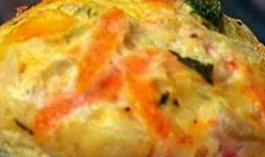 1. Versez le mélange d’œufs et de légumes dans le moule à muffins préparé, en remplissant chaque tasse aux 3/4 environ.